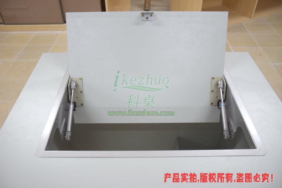 當需要使用顯示器時輕按前端桌面板隱藏在桌子內(nèi)部的顯示器會自動從桌子下面升到桌面翻轉(zhuǎn)到合適角度。當不使用顯示器時,可手動按下顯示器翻蓋面板至桌面平整,顯示器自動鎖住隱藏在桌子內(nèi)與桌面保持平整一致。起到防塵,防盜,保持桌面平整美觀。使用方便,手動控制,翻轉(zhuǎn)自如。
