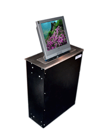 液晶屏升降器主要應(yīng)用于大型會(huì)議室,高級(jí)多媒體網(wǎng)絡(luò)系統(tǒng),當(dāng)需要舉行會(huì)議時(shí)隱藏在會(huì)議桌內(nèi)的升降機(jī)把顯示屏從會(huì)議桌下面自動(dòng)升到桌面并仰成一成角度,符合人機(jī)工程學(xué)原理,產(chǎn)品也可以左右調(diào)節(jié)角度,更有利于辦公演示的需要,當(dāng)不使用時(shí)顯示屏可自動(dòng)下降隱藏于會(huì)議桌內(nèi)部,并自動(dòng)關(guān)門,產(chǎn)品具有防盜、防塵保持桌面平整,美化桌面等功能。最新研制生產(chǎn)的同步帶傳輸液晶顯示屏升降器,克服了鏈條、和齒條升降器的噪音大、油污多、傳動(dòng)不穩(wěn)定等缺點(diǎn),是目前國內(nèi)最新液晶屏升降器的傳動(dòng)方式。